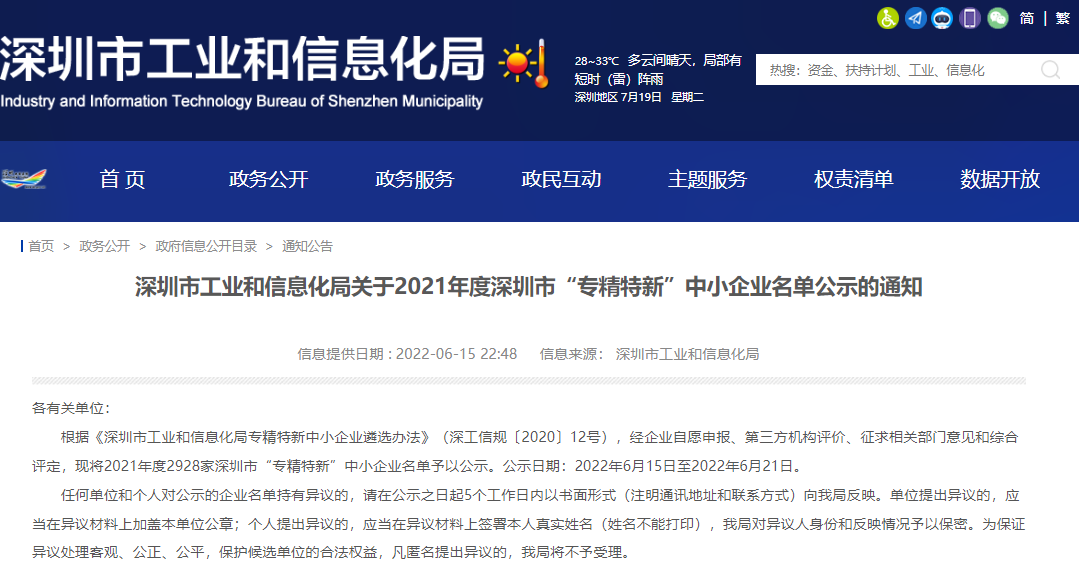 近日,深圳市工業(yè)和信息化局公布了2021年度深圳市“專(zhuān)精特新”中小企業(yè)名單,安華光電榮登榜單。此次成功入選,是政府對(duì)安華光電專(zhuān)業(yè)技術(shù)水平、科技創(chuàng)新能力、行業(yè)影響力及綜合實(shí)力的認(rèn)可和肯定。