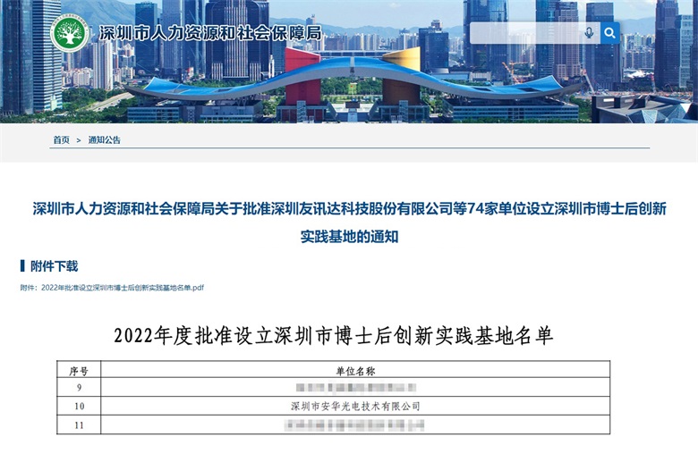 近日,由深圳市人力資源和社會(huì)保障局組織開展的2022年度博士后創(chuàng)新實(shí)踐基地設(shè)立工作圓滿結(jié)束,經(jīng)單位申報(bào)、專家評(píng)審、網(wǎng)絡(luò)公示等程序,74家單位獲批深圳市博士后創(chuàng)新實(shí)踐基地,安華光電成功入選,開啟構(gòu)筑人才集聚高地的新篇章。